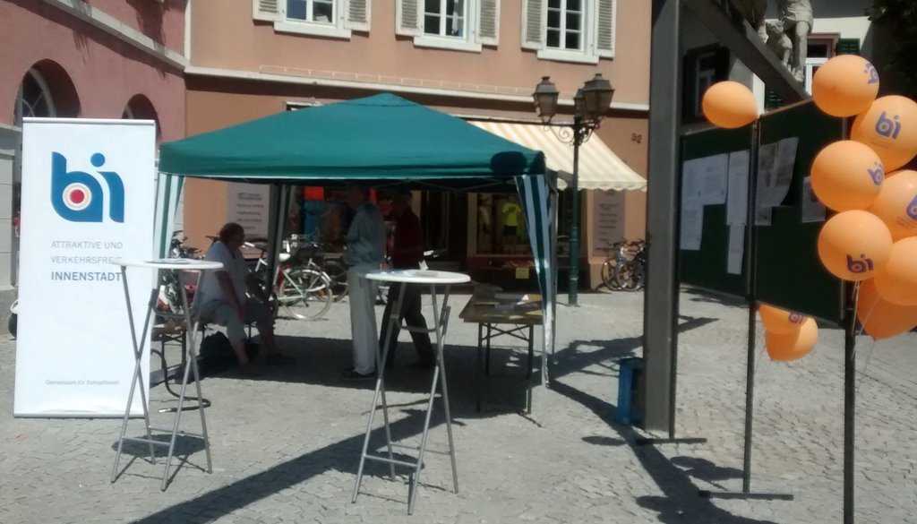 Das Ziel der Bürgerinitiative Attraktive verkehrsfreie Innenstadt ist der Umbau des Innenstadtbereichs in eine Fußgängerzone von der Ecke Regio Buchhandlung