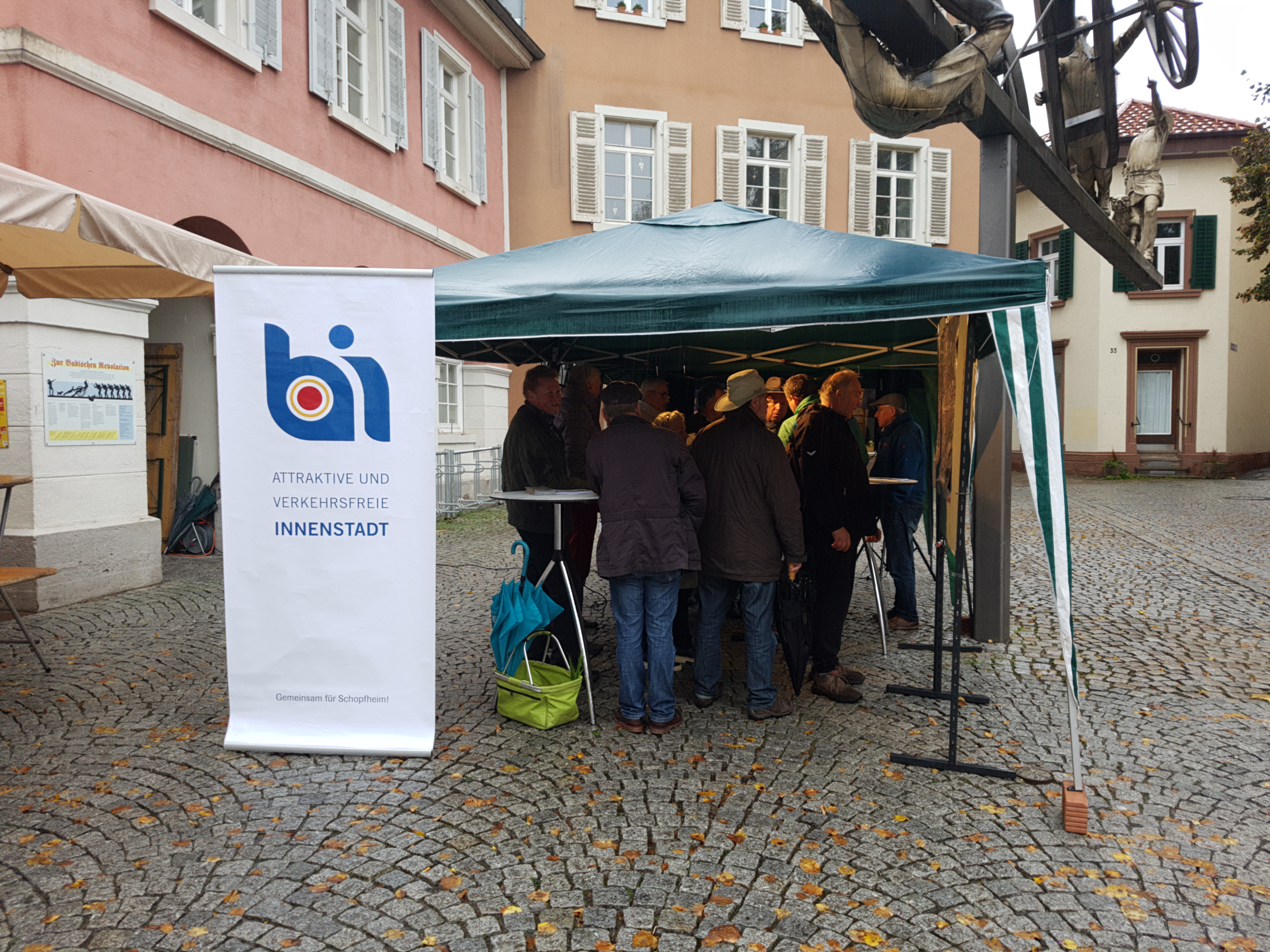 Im Jahr 2018 konnten die Bürgerinnen und Bürger der Stadt Schopfheim Ihre Fragen und Ihre Kritik direkt an die Mitglieder der Bürgerinitiative Attraktive verkehrsfreie Innenstadt richten. Hierzu gab es einen Marktstand auf dem Stadtplatz in Schopfheim.